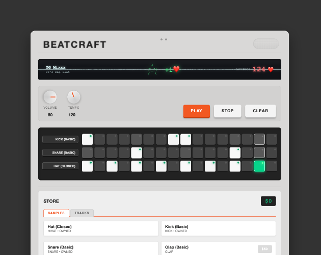 BeatCraft is a game prototype about crafting beats for customers to earn $$$